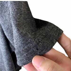 Has well worn look / but that’s what’s intended. Small hole on sleeve as shown in photo but does not go all the way through.