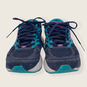 Brooks Addiction 13 Lace Up Athletic Running Shoes Blue Purple. Size 6. Fair used condition, soles are dirty and a bit wrinkly, there is a stain on the left shoe that wouldn't wipe off, the front toe bit on the right shoe is slightly loose.