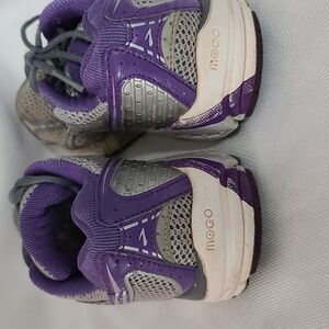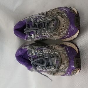 Brooks Addiction Mogo DNA Sneakers Purple Silver Size 8 Wide GUC. Pre-owned, minor wear, overall good condition.