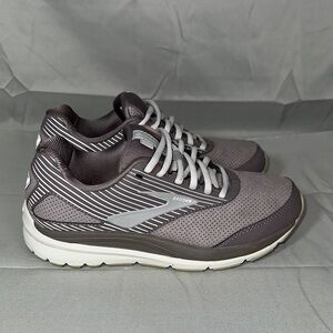 These Brooks athletic shoes feature a sleek gray design with a breathable mesh upper, ensuring comfort during workouts. The cushioned sole provides excellent support, making them ideal for running or walking. Experience the perfect blend of style and functionality with these minimalist shoes.