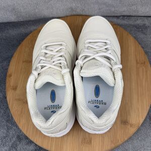 Notes: Classic all-white leather walking design built for supportive, all-day comfort.