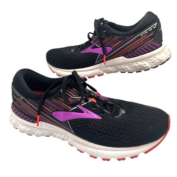 Brooks Adrenaline GTS 19 Womens 11B Athletic Running Shoes Sneaker Black Purple