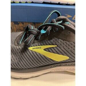 The product is a pair of Brooks Adrenaline GTS 20 running shoes in black and green, size 8.5. These athletic sneakers are designed for gym and training activities, walking, and running, with a low top lace-up closure for a secure fit. Made with mesh upper material, they offer breathability and comfort for various occasions such as activewear and casual wear. The Brooks Adrenaline model is known for its performance and durability, making it a reliable choice for men looking for quality athletic footwear.