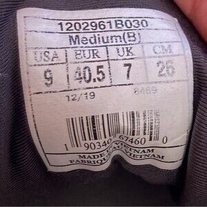 In good pre-owned condition with no rips or tears in rubber or tread. Toebox intact, molds to feet when inside. Several stains on upper mesh fabric, purely cosmetic. Bottoms and tread in very good condition.
