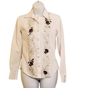 Brooks And Dunn Panhandle Slim Shirt Womens XS Long Sleeve Floral Embroidered Pe