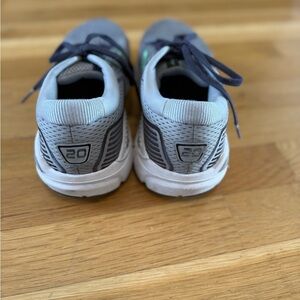 Stylish Brooks sneakers. Gray mesh upper. Green accents. Comfortable and durable.