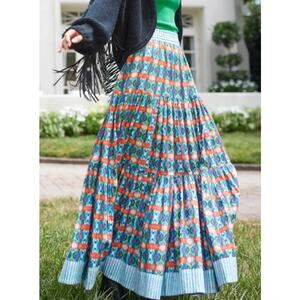 Brooks Ave. Triple-Tiered Elastic Waist Flowy Boho Cotton Maxi Skirt, L