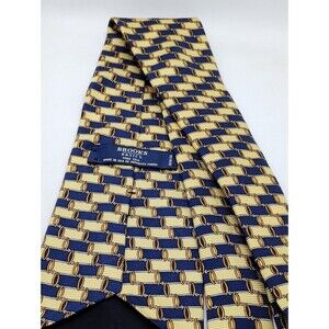 Brooks Basics Silk Men's Tie. Blue Yellow & Gold Necktie. EUC 58" x 3 7/8"