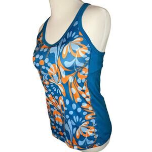 Brooks Blue Orange Floral Racerback Sports Tank Top Women’s Size Small