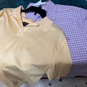 Brooks Brother 2pc Large Bundle Short Sleeve Yellow Polo&Purple Button Down