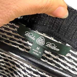 Brooks Brother Black White V Neck Dotted Long Sleeve Knit Sweater Top Medium