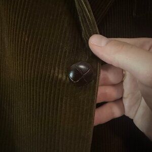 Great Chocolate Brown Corduroy Jacket from Brooks Brothers in excellent condition. Has fun leather buttons and comes with two extras.