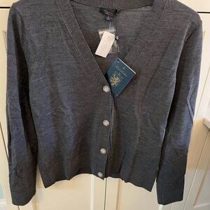 Dark grey cardigan Brooks Brother sweater never worn, tags attached. 100% Saxxon wool, size Large