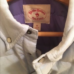 Never worn Brooks Brothers Red Fleece medium Oxford down shirt jacket - Just in time for the Fall season! 80% Duck Down 20% Duck Feathers great for warmth. Faux Arrow placket for style - with quality snaps and nylon lining. Great to wear over anything! Get it while it's still available