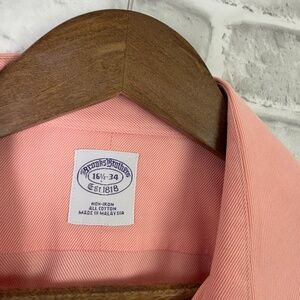 Brooks Brother Peach Pink Fine Striped Long SLV Button Up Dress Shirt Mens 16.5