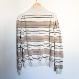 Brooks Brother Sweater Mens Quarter Zip Stripe Supima Cotton Beige Ivory Office Work