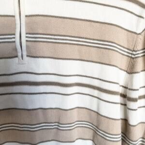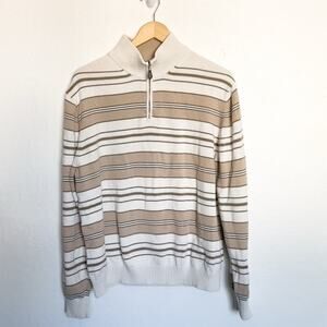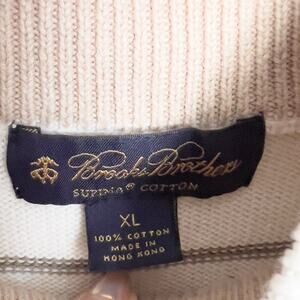 Brooks Brother Sweater Mens XL Quarter Zip Stripe Supima Cotton Beige Ivory