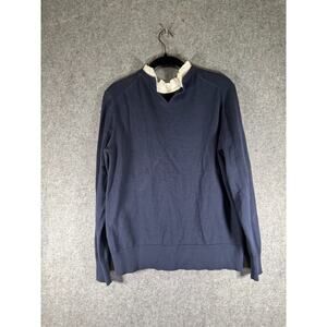 Brooks Brother Top Women Large Blue Ruffle Hems Preppy Academia Professional