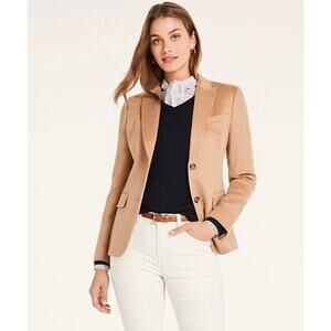 Brooks Brothers camel hair blazer, Italian fabric jacket, Tollegno 1900 wool, classic camel blazer, tailored women’s jacket, neutral outerwear, fall essential, timeless workwear, luxury fabric, preppy chic, capsule wardrobe staple, soft camel coat, structured blazer