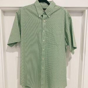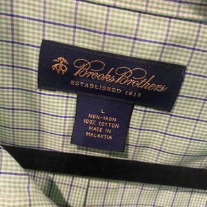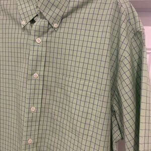 Brooks Brothers 100% Cotton Green/Blue Check Non-Iron Button Up Shirt, Large