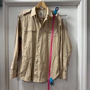 Brooks Brothers 100% Cotton Light Beige Military Sport Button up shirt size BB3