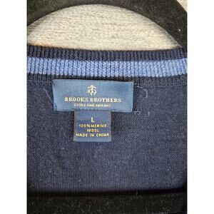 Brooks Brothers 100% Extra Fine Merino Wool V Neck Sweater Sz LG Blue colorblock