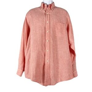 Brooks Brothers 100% Linen Long Sleeve Button Shirt Large Mens Pink Lightweight