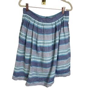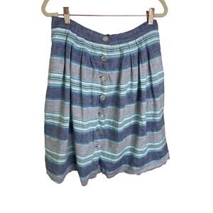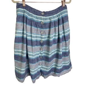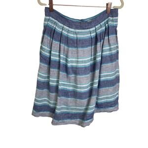 Brooks Brothers 100% Linen Striped Mini Skirt Button Front Blue White Size 8