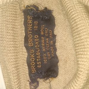 A beautiful beige turtleneck from Brooks Brothers in 100% Merino wool. Made in Italy. The size tag came off but I'd say it fits like a medium. Excellent pre-owned condition.