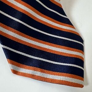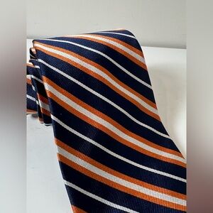 Brooks Brothers 100% Silk Made in USA Striped Navy and Orange Tie EUC