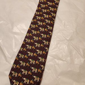 Brooks Brothers 100% Silk Tie - Circus Elephants on Burgundy