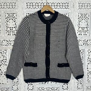 Brooks Brothers 100% Wool Black & White Houndstooth Preppy Button Up Cardigan Sz Large