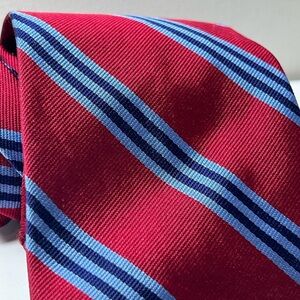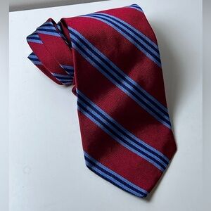 Elevate your style with this classic red and blue striped tie. Perfect for any formal occasion.