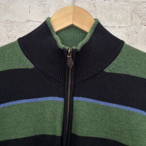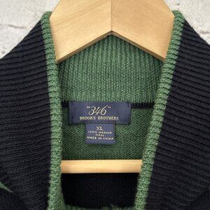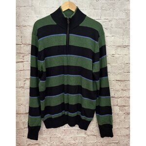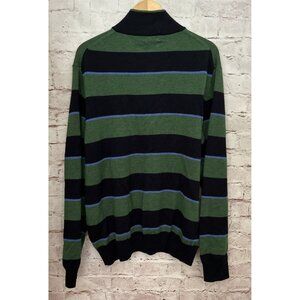 Brooks Brothers 1/4 Zip Sweater Mens XL 100% Merino Wool Green Blue Striped
