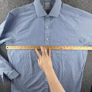 Brooks Brothers 17 36 Striped Regular Non-Iron Shirt Mens Button Up Blue Pocket