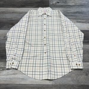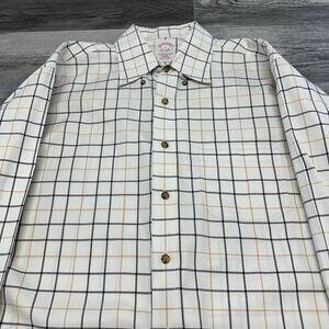 Brooks Brothers 1818 Cream Plaid Mens L Window Pane Non Iron Button Down Shirt