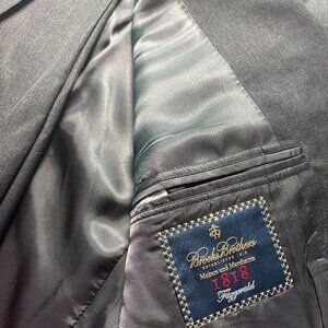 The Brooks Brothers 1818 Fitzgerald Mens Wool Suit Jacket 46R is a classic charcoal gray blazer made in the USA with high-quality pure wool material.