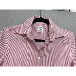 Brooks Brothers 1818 Fitted Women's 3/4 Sleeve Button Pink Stripe Shirt Size 4