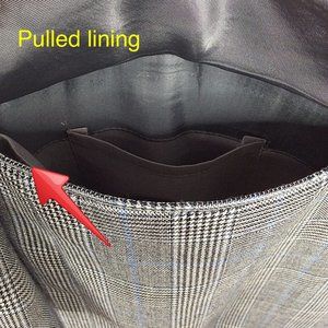 One small flaw, inside pocket has corner of lining pulled, see picture. Otherwise excellent condition.