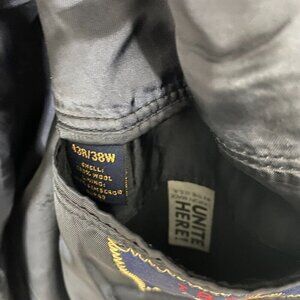 Very Good Pre-Owned Condition-- no rips, stains, smells, or tears, EXCEPT there is a tiny hole (pointed out) and a rip in the lining of the armpit (pointed out.) Please see photos for full condition description.