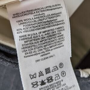 Material: 100% wool shell; lining 60% acetate, 40% viscose