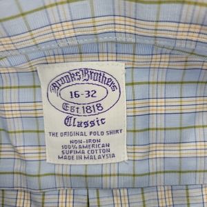Brooks Brothers 1818 Shirt Mens 16-32 Blue Plaid Button Down