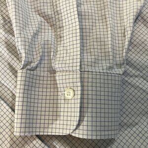 Elevate your professional wardrobe with this Brooks Brothers 1818 dress shirt. The collared neckline and button-down collar style create a polished look perfect for business occasions. The shirt features a classic check pattern in off white dark blue hues, made from 100% Supima cotton for a comfortable and durable wear. With long cuffed sleeves and a barrel cuff style, this regular fit shirt also boasts easy care, non-iron, wrinkle-resistant, and all-season features, ensuring a low-maintenance addition to your wardrobe. Perfect for the fall season, this dress shirt is machine washable and made in Malaysia as part of the Brooks Brothers product line.