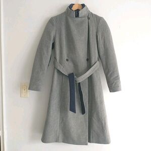 Brooks Brothers 2in1 Pea Coat Women S Gray Wool Blend Belt Hood Double Breasted