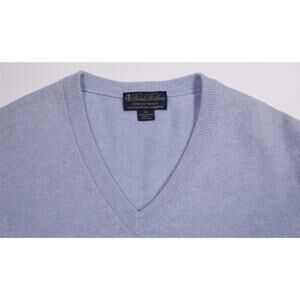 Brooks Brothers 3 Ply Scottish Cashmere V-Neck Knit Sweater Light Blue Men's XL