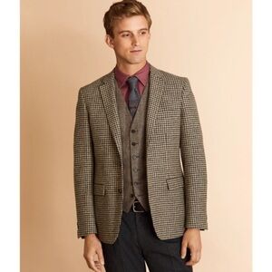 Brooks Brothers 346 2-Button Houndstooth Tan Blazer Jacket Wool Size 43R