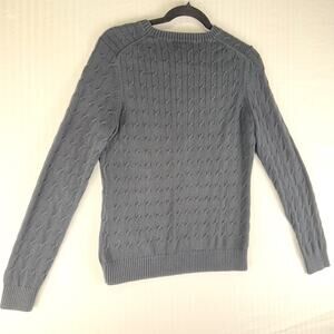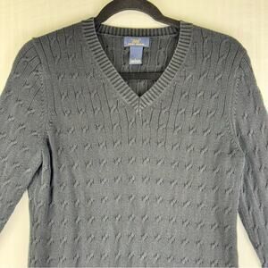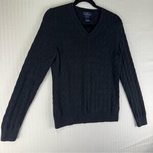 Brooks Brothers 346 Black Cable Knit Cotton V-Neck Sweater Women’s Size Large