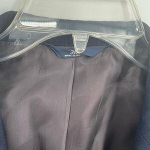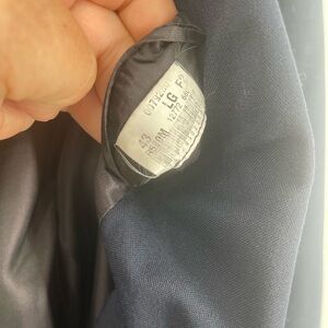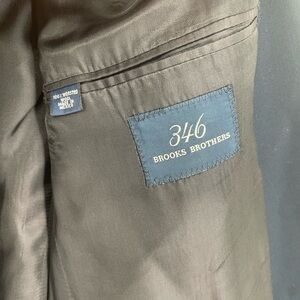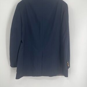 Brooks Brothers 346 Blazer Men Size 43L Navy Blue Worsted Wool Gold Buttons. Lapels and collar. 3 button cuffs. Lined. One breast pocket. 2 front flap pockets. Back shoulder seam to shoulder seam 19. Single back vent. Very good preowned condition.