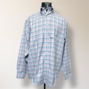 Brooks Brothers 346 Blue Red Plaid Long Sleeve Button Down Shirt Preppy Men's L
