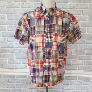Brooks Brothers 346 Button Patchwork Cotton Quilted Madras Shirt Short Sleeve Preppy M